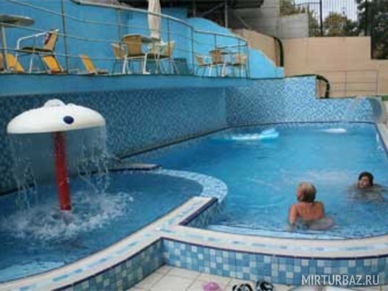 Летний бассейн с детским отделением и водными аттракционами: водопад, противоток, гидромассаж. Чистота воды поддерживается самыми современными системами фильтрации и очистки.