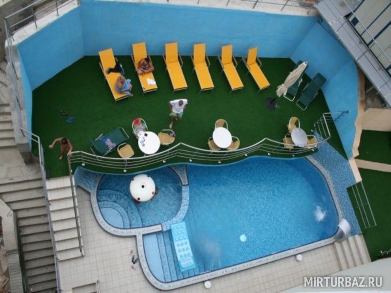 Тип бассейна: открытый бассейнРядом с бассейном: шезлонги, зонтикиРазмеры: 3 x 6 мПлощадь: 18 м²Время работы: от 08:00 до 23:00Глубина (диапазон): до 300 смЛетний бассейн с детским отделением и водными аттракционами: водопад, противоток, гидромассаж. Чистота воды поддерживается самыми современными системами фильтрации и очистки.