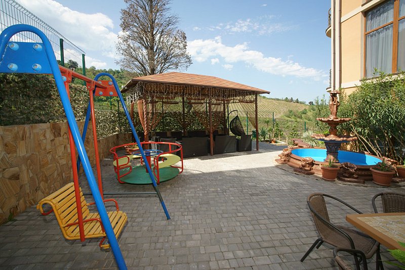 В отеле имеется детская площадка с каруселькой и качелями, по соседству с ними мангал, на нашем опыте он был в деле ежедневно. Т.е. ребенок идет к каруселям мимо горячего мангала. На эту же площаку выходят двери других номеров.
