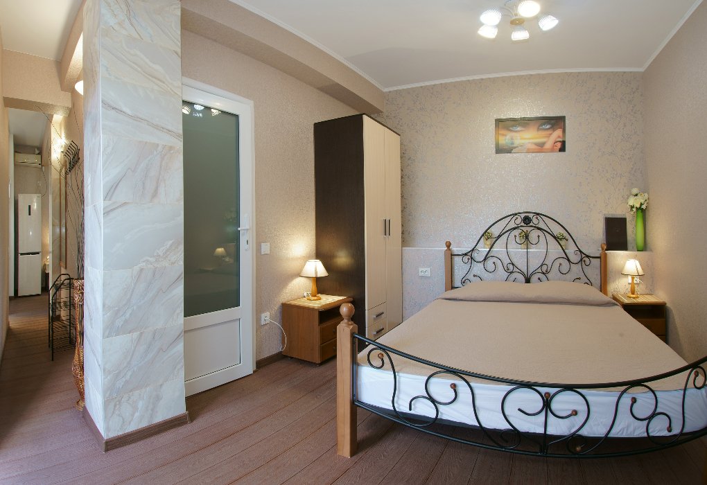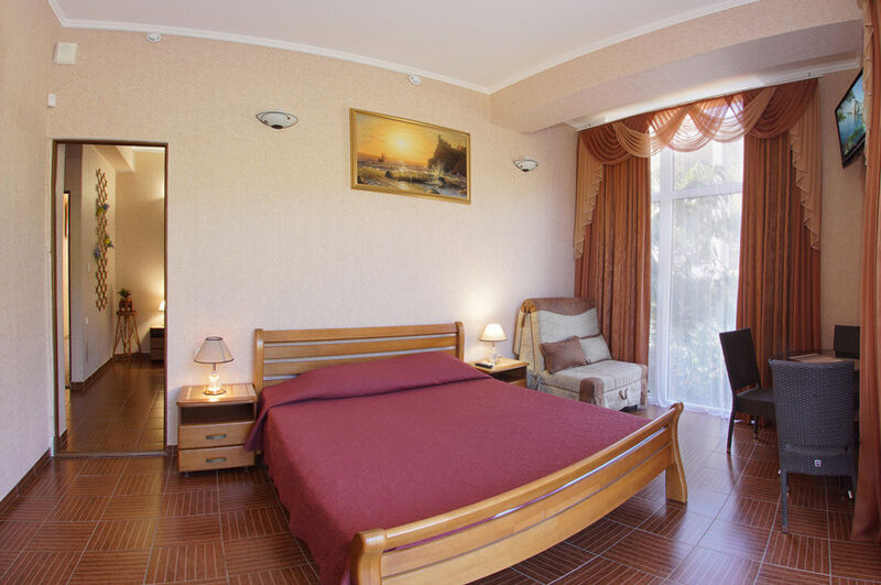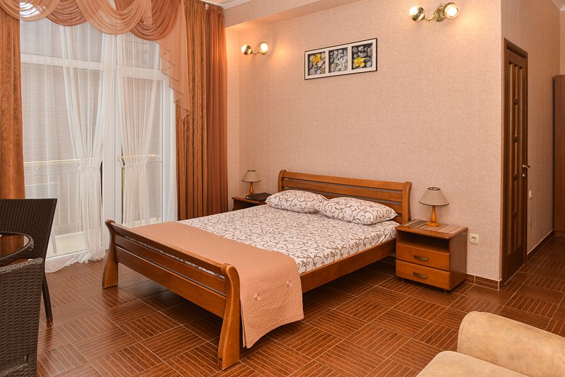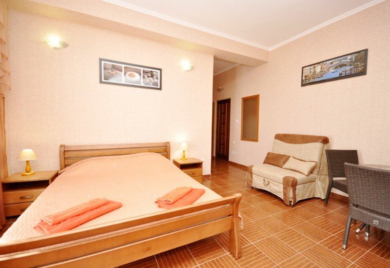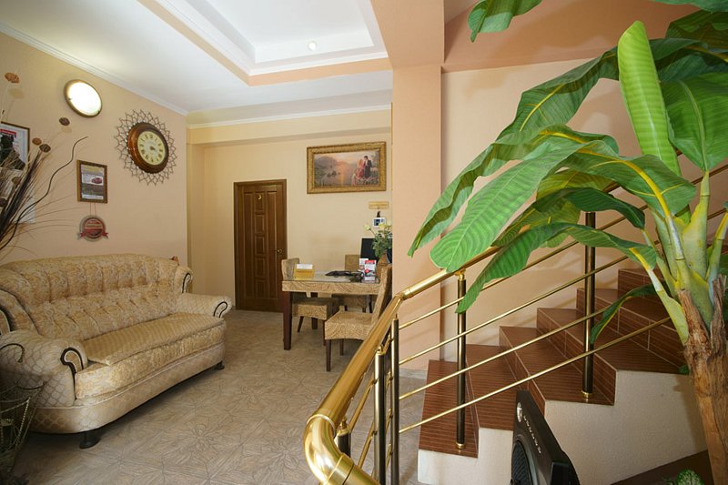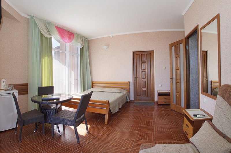 Возникает вопрос к хозяйке отеля. Уважаемая Анна Николаевна, как же так вышло, что номер одной из самых высоких ценовых категорий находится в подвале и ограничен кухней с одной стороны и общей террасой с другой, тем самым не имеет самостоятельного выхода ни в коридор, ни на улицу.