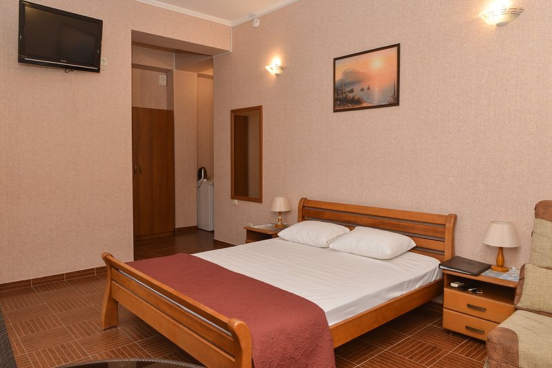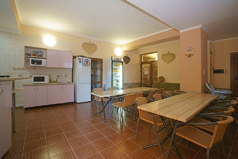 В описании указано, что отель предоставляет проживающим завтраки и даже представлено меню. Но только нигде не написано, что кушать вы будете ходить в другое кафе опять по той же горе. Баня, а через дорогу раздевалка получается. В самом отеле кухня только для самостоятельного приготовления пищи. И честно сказать, я не нашла рядом такого уж разнообразия доступных ресторанов. Либо невкусно, либо дорого. Кафе, в которое предоставляются талоны на питание ( если оно входит в тур), относится в отелю Вилла Мира. Так вот кухня там ниже среднего и это я еще завысила оценку. Переслащеные и жидкие каши на завтрак, недоваренный рис, слипшиеся макароны, ложка гущи на тарелку супа и водянистая картошка - так кормят в данном заведении. Товарищи "повара", стыд и позор! Ассортимент разнообразный, но каждый день одно и то же. Ребенка так вообще накормить надумаешься. В основном все жареное, специй не жалеют.