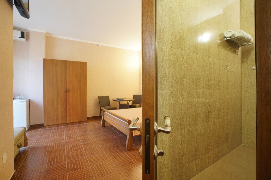 Вода в ванной уходит плохо, мучают засоры, после мытья на полу по всей ванной болото, вытирать его приходится самим. Кстати, дверь нашего номера можно было запереть только на ключ, не критично, но неудобно.