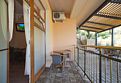 В номере вечный затхлый запах, проветрить его просто невозможно. На типа балконе белье не сохнет по двое суток. Мебель и постельное белье влажное. Открывать все окна тоже не получается, иначе ты становишься участником общей тусовки на террасе. В ванной нет вентиляции, ароматы ванили будут с вами на протяжении всего отдыха. К тому же на окне ванной висит телевизор. Любители петь в душе, вам сюда! Плюс из-за козырька террасы в номере постоянный полумрак.