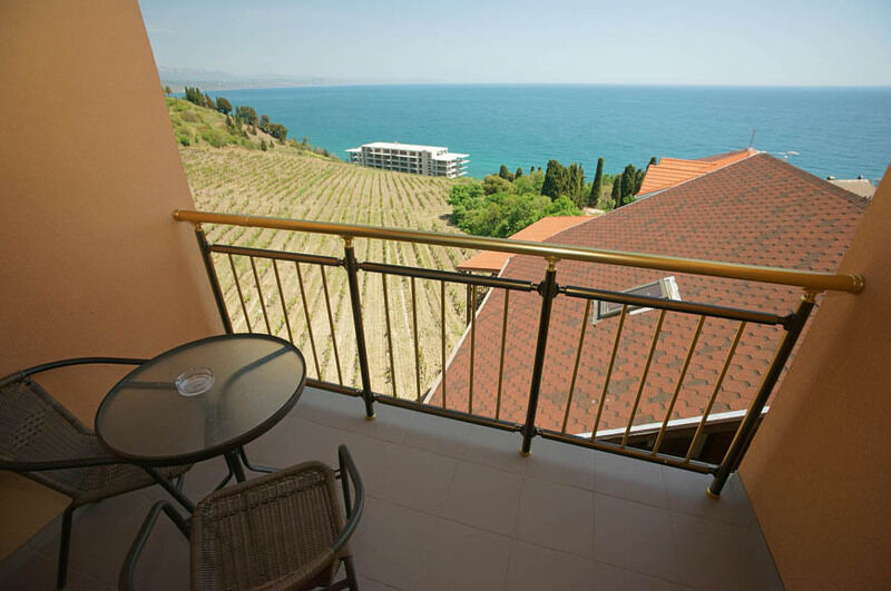 С балконов и панорамных окон открывается потрясающий вид на море, виноградники и горы.