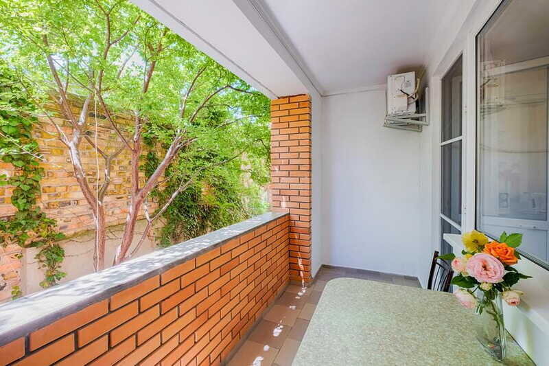 На широкой лоджии можно комфортно расположиться с утренним кофе или вечерним бокалом вина. Комната на первом этаже выходит на внутренний двор.