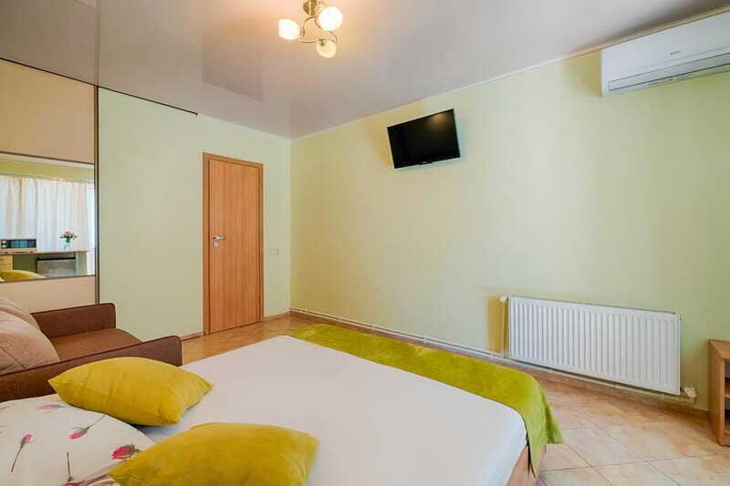 В номерах есть все для удобного отдыха. Вы сможете отдохнуть на двуспальной кровати с ортопедическим матрасом и диване с удобным спальным местом.