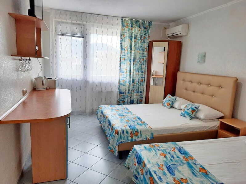 Короткий отпуск с друзьямиЖдем новый сезонПо многолетней традиции два раза в год большой компанией приезжаем в мае и сентябре в этот уютный и отель.Здесь есть все, что нужно для хорошего отдыха. Очень удобно расположен: минут 8 пешком до моря по прямой, в тоже время вдалеке от прибрежного шума дискотек. Номера оборудованы всем необходимым. Для желающих готовить есть прекрасная летняя кухня. А главное-есть зал для занятий спортом или танцами. Нашим детям очень нравится: закрытая территория, есть небольшой детский уголок. А самое главное- это душа отеля: гостеприимные и отзывчивые хозяева! Любые вопросы решаются моментально! Отдельная благодарность им за это! В общем, ждем с нетерпением нового сезона! 💜