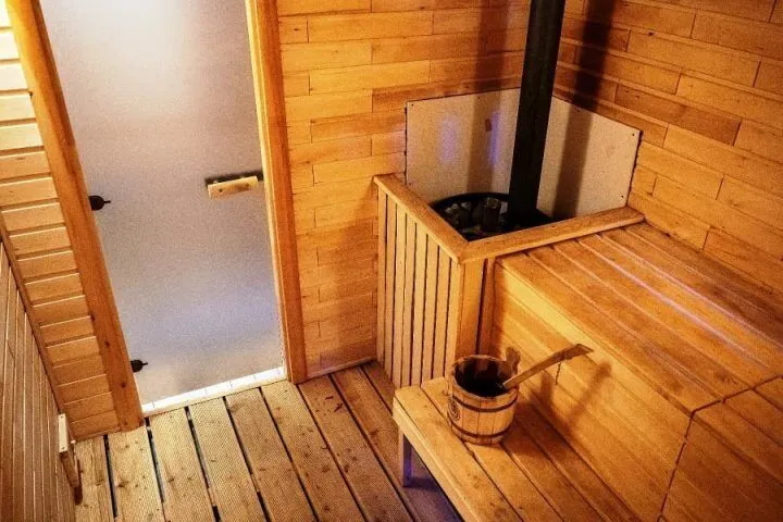 За каждое доп. место — 500 руб.Баня сделана из сосновых пород деревьев. В парилке есть удобные полки.