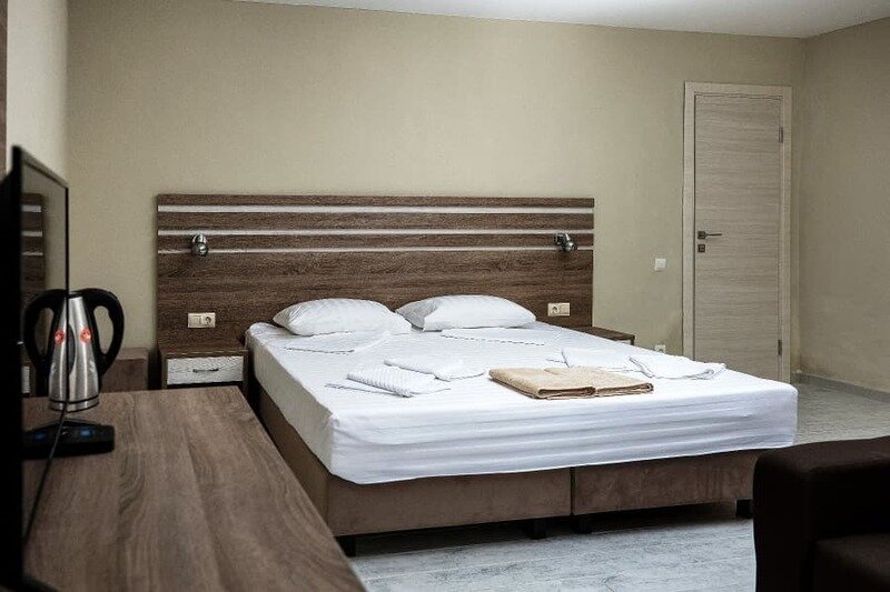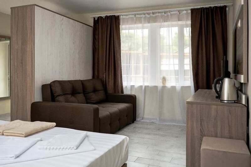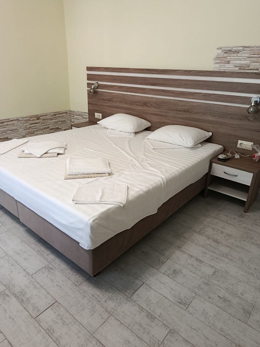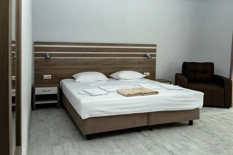Семейный отдыхДостоинстваЧистая комната, с удобными кроватями. Территория тихая, чистая, постороннего шума нет, до пляжа хоть и с горки недалеко и не напряжно. хозяевы приветливы