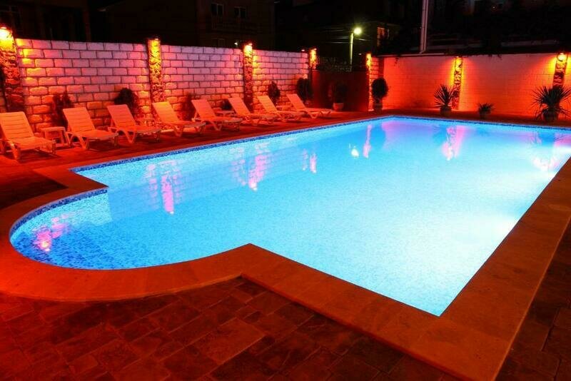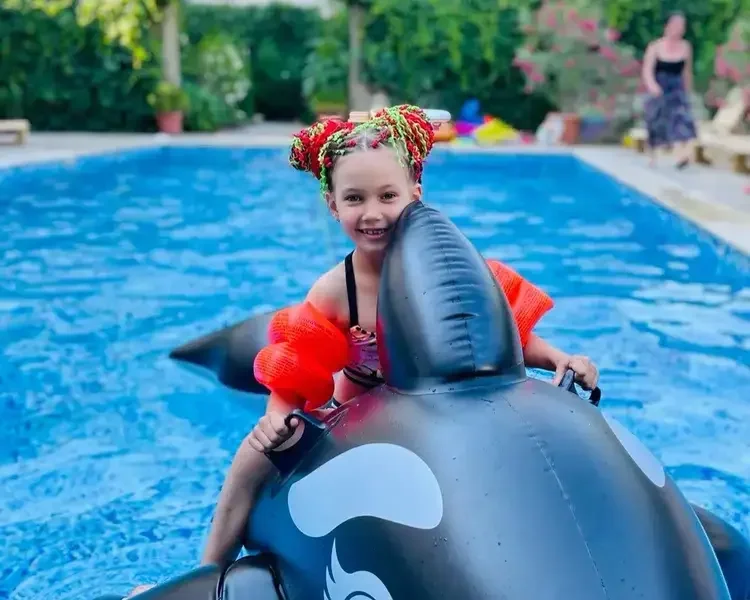Идеально чистый бассейн окружен зоной солярия с комфортными лежаками и мягкими полотенцами, где можно отлично отдохнуть и позагорать. Здесь же наши маленькие гости и их родители найдут самые разнообразные средства для плавания и игр на воде. В темное время суток бассейн подсвечивается разными цветами радуги.