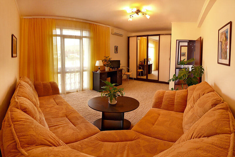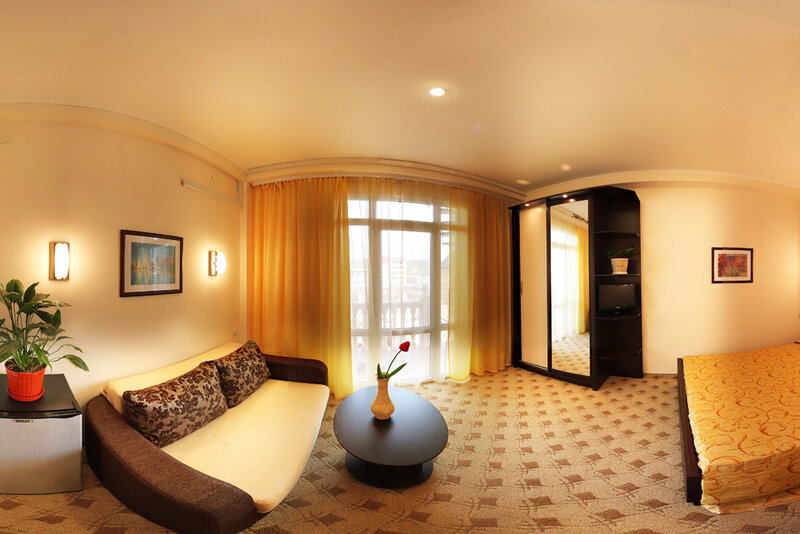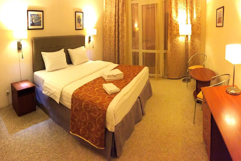 4-х этажный корпус отеля с белоснежными балюстрадами находится на охраняемой территории с благоустроенным внутренним двором. Гостей ожидают комфортабельные уютные номера разной категории, в том числе Люксы и Апартаменты. Все номера оснащены ванной комнатой, кондиционером и укомплектованы бытовой техникой — везде есть плазменный телевизор, фен, электрочайник.