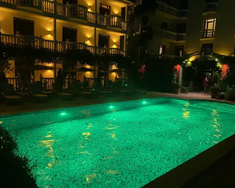 Тип бассейна: открытый бассейнРядом с бассейном: шезлонги, полотенцаВремя работы: от 07:00 до 23:00Глубина: 160 смИдеально чистый бассейн окружен зоной солярия с комфортными лежаками и мягкими полотенцами, где можно отлично отдохнуть и позагорать. Здесь же наши маленькие гости и их родители найдут самые разнообразные средства для плавания и игр на воде. В темное время суток бассейн подсвечивается разными цветами радуги.