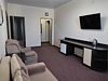“Люкс” – комфортабельный, уютный, просторный двухкомнатный номер, состоит из спальни с большой кроватью и гостиной с диваном, кресло- кроватью, прихожей, совмещенным санузлом, лоджией. Номер рассчитан как для проживания семьи из 4 человек, так и для деловой поездки. Возможно размещение на доп.месте 1 человека (с доплатой).Услуги и удобства