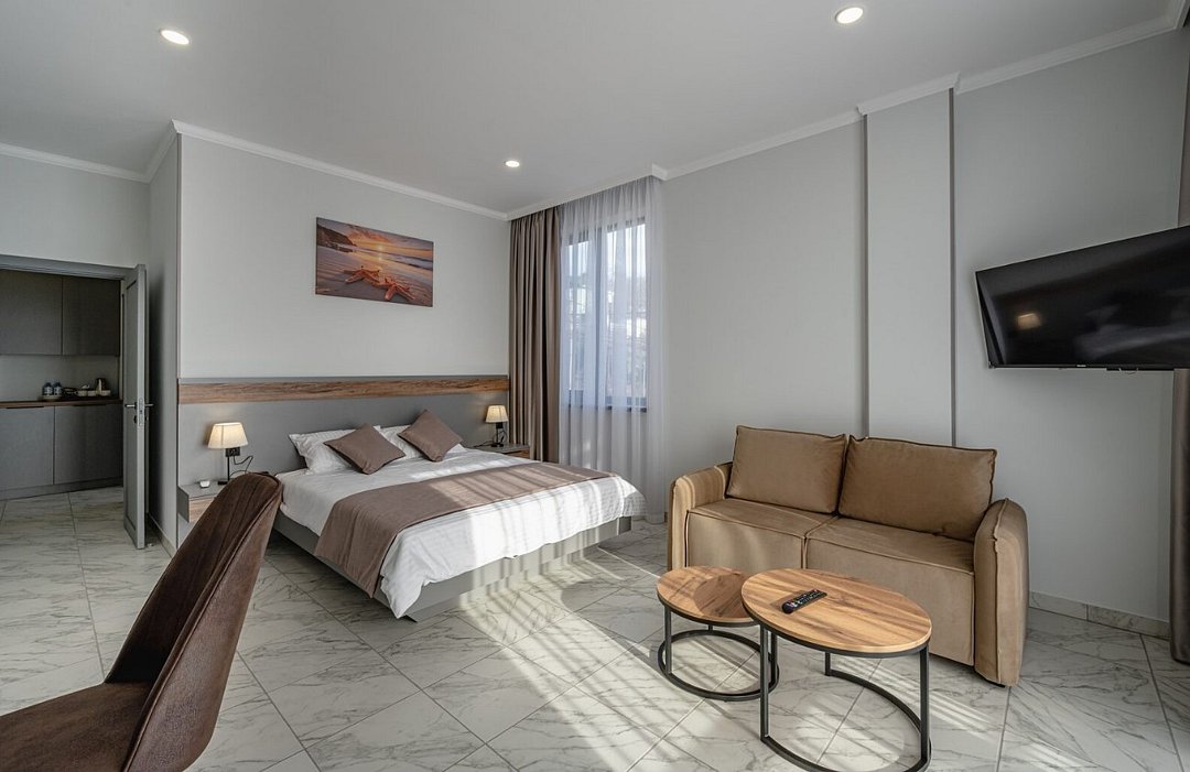 Комфортабельные номера, оформленные в светлых, южных тонах, оборудованы всем необходимым для современного человека. После дня, наполненного впечатлениями от прогулок по Ялте, посещения дворцов или горных троп, гости возвращаются в свой тихий уголок. Они могут насладиться отдыхом в ухоженном дворе, где ароматы крымских растений смешиваются с морским бризом, или поделиться впечатлениями за чашечкой кофе на террасе.