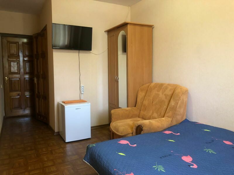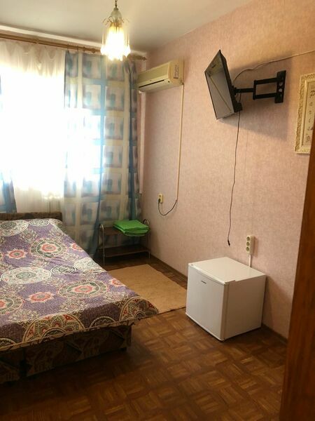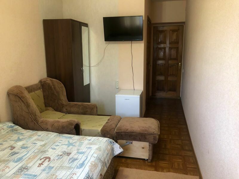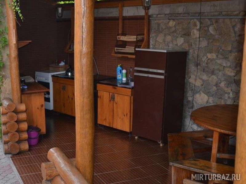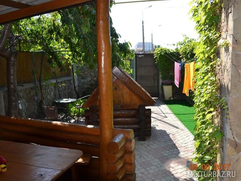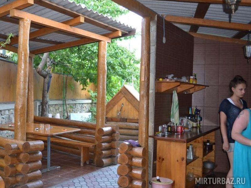 Имеется уютный дворик с деревянными беседками для отдыха, летняя кухня с двумя плитами и мойками, и всем необходимым для самостоятельного приготовления пищи. Сам гостевой дом трехэтажный с 9 номерами, в которых имеется санузел с горячей водой, небольшой холодильник, телевизор, кабельное ТВ, кондиционер, Wi-Fi. Воспользоваться стиральной машиной можно за отдельную плату. По договорённости возможна встреча в аэропорту.