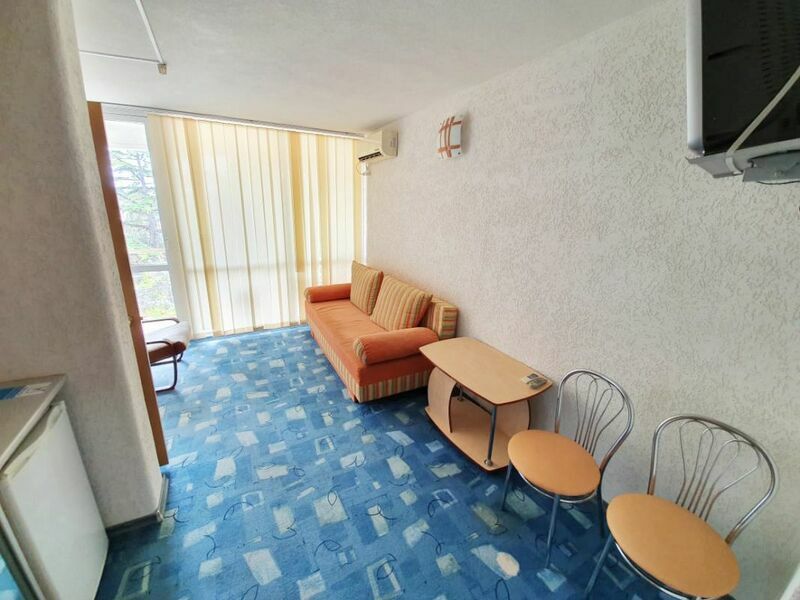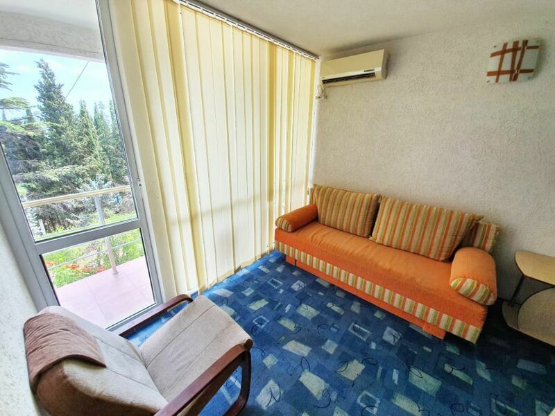 В номере: раздельные комнаты –спальня и гостиная, ванная комната, балкон. В спальне: двуспальная кровать; в гостиной: раскладной двуспальный диван, ТВ, холодильник, кондиционер; в ванной комнате: душ, туалет, бойлер.