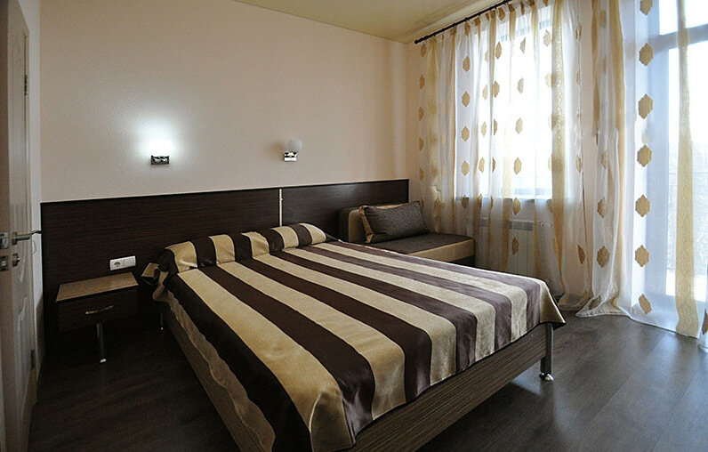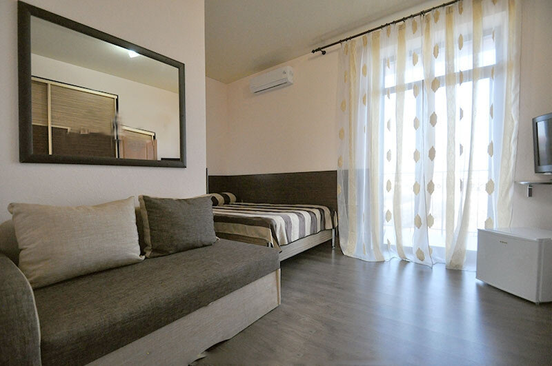 Гостевой дом состоит из четырехэтажного корпуса с мансардой, расположенного на закрытой территории всего в 500 м от моря. Номера предлагают удобства в виде ванной комнаты с душем, кондиционера, телевизора и мини-холодильника.