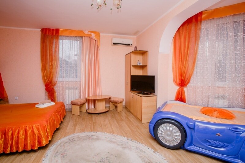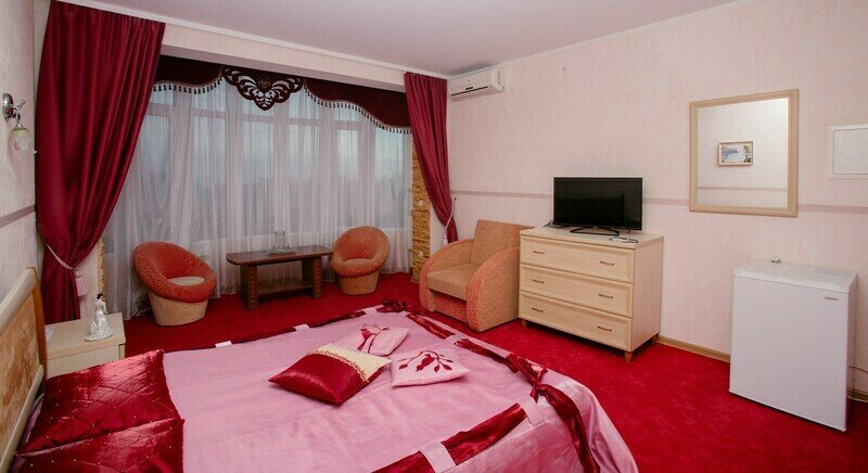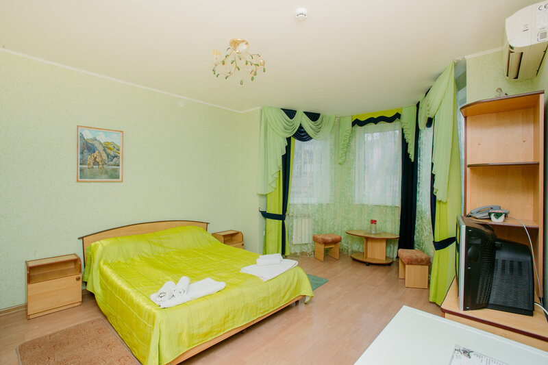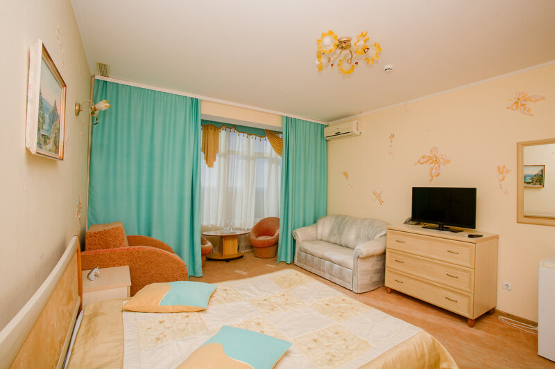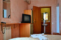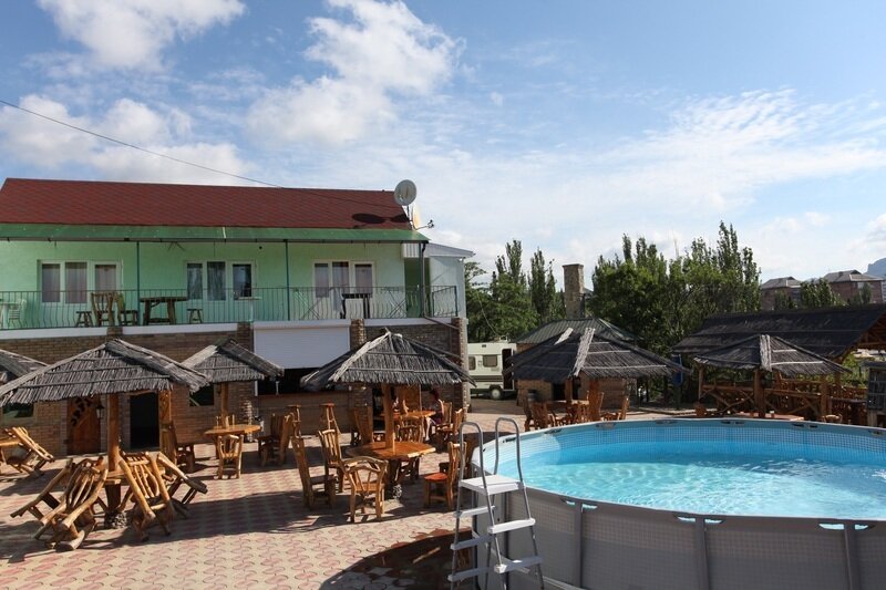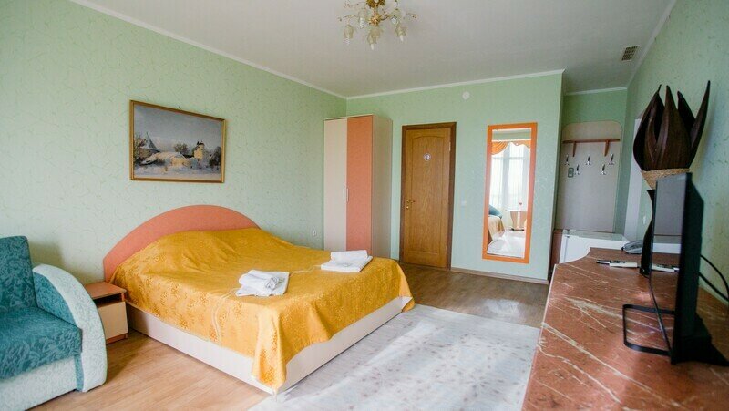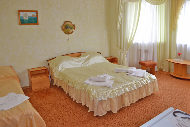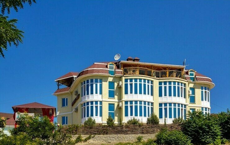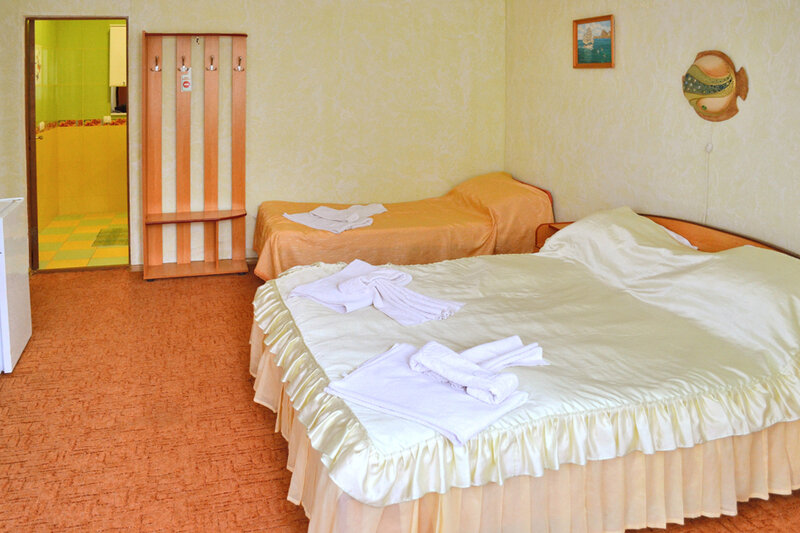 Трехэтажный корпус гостевого дома занимает собственную закрытую территорию среди тихого квартала малоэтажной застройки. Гостей ожидают номера разные по вместимости и уровню комфорта. В каждом номере есть санузел, кондиционер, спасающий от крымской жары, телевизор, холодильник.