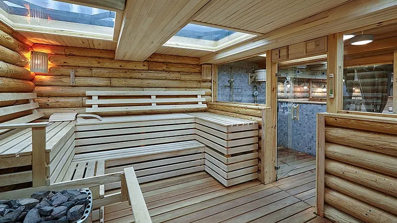 В СПА-отеле предусмотрены условия для проведения оздоровительных процедур: работает первый в Крыму «Центр грязеомоложения сакской грязью», соляная пещера, сауны и Центр оздоровительного массажа, в которых можно пройти программу по уходу за лицом и телом.