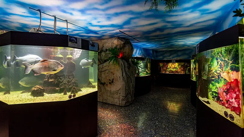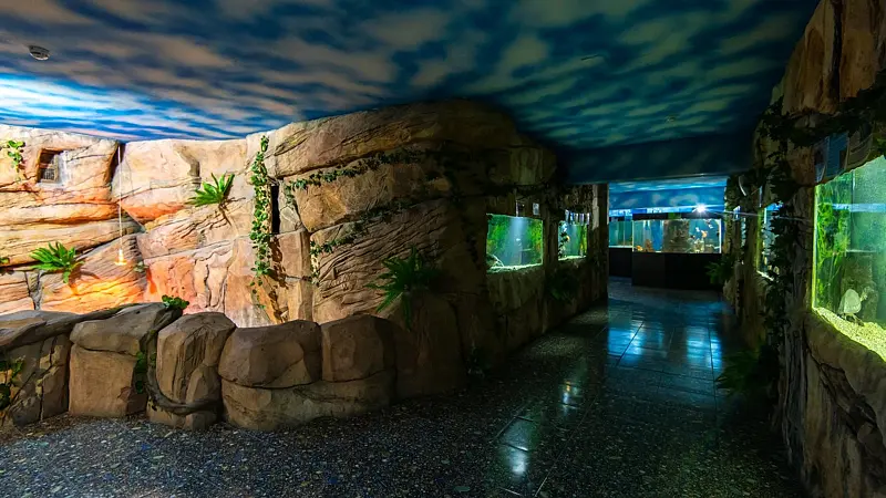 Эксклюзивная коллекция океанариума насчитывает более 200 видов редких представителей фауны: акулы, пираньи, скаты, крокодилы, черепахи, рыбы-обезьяны, рыбы-коровы, рыбы-попугаи и многие другие.