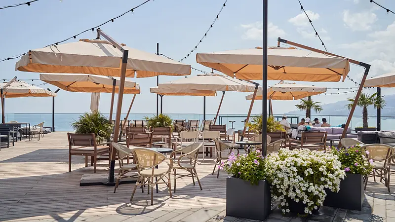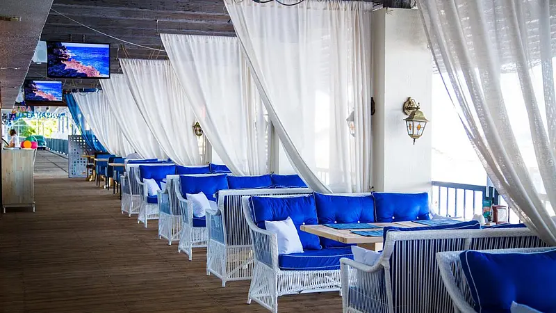 Kiki Beach - это комфортный отдых для всей семьи. На территории находятся песчаный пляж с бассейном, детская комната, бунгало, шезлонги, а также двухуровневый панорамный ресторан средиземноморской кухни и авторским баром.