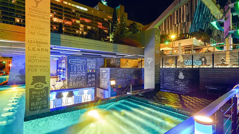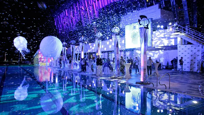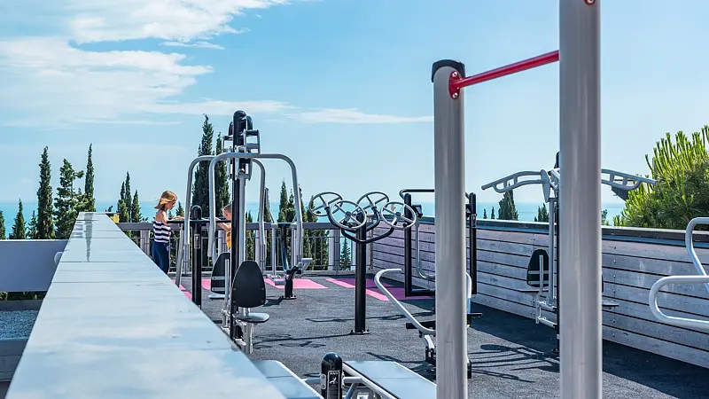 У любителей активного отдыха есть возможность пользоваться большим пятидесяти метровым подогреваемым бассейном с морской водой, где проводятся занятия по аквааэробике и водному поло, инфинити-бассейном с невероятным видом на море, прыжковым бассейном с 10-метровой вышкой, современным аквапарком.