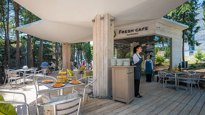 Читать полностьюЭкорынок отеля Yalta Intourist – это натуральные и полезные местные продукты, памятные сувениры, крымские чаи и блюда разных стран мира. Вы сможете насладиться спелыми фруктами и овощами, ароматными закусками, морепродуктами, сладостями, напитками и десертами в оригинальной подаче. Вас также порадует гриль-зона, увлекательные мероприятия и другие развлечения.