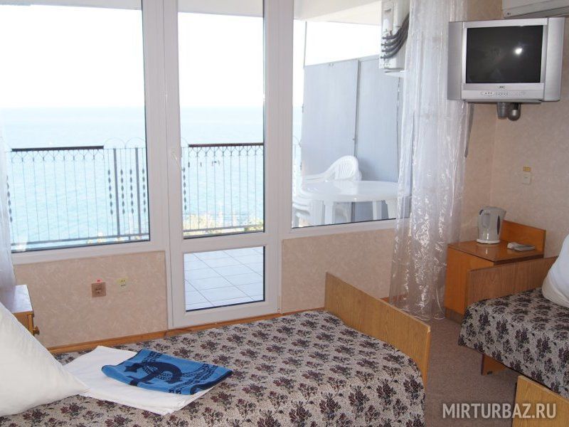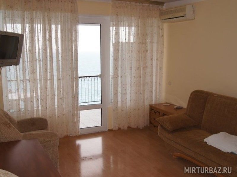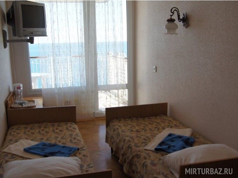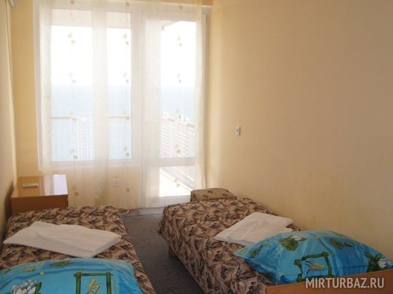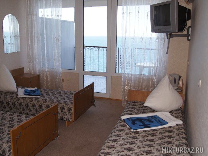 1-комнатный стандарт с выходом на балкон с видом на море (3 основных места). В номере спальная комната с раздельными кроватями и ТВ. Душевая, санузел и холодильник общий на 2 номера.