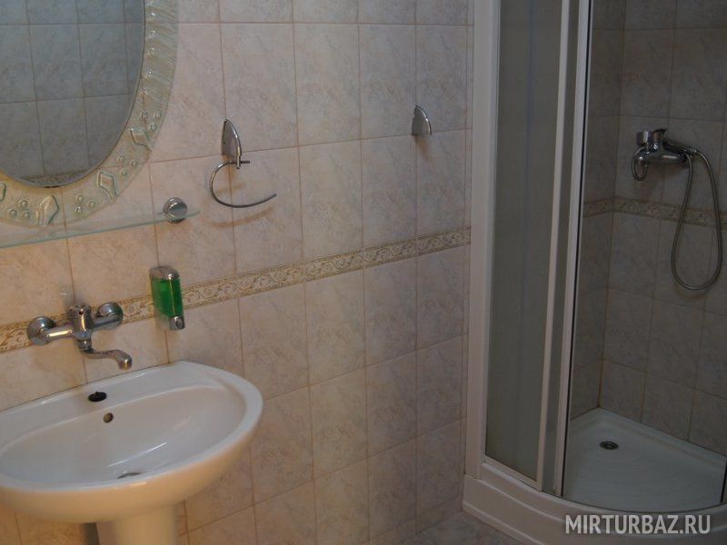 1-комнатный стандарт с выходом на балкон с видом на море (2 основных места). В номере спальная комната с раздельными кроватями и ТВ. Душевая, санузел и холодильник общий на 2 номера.