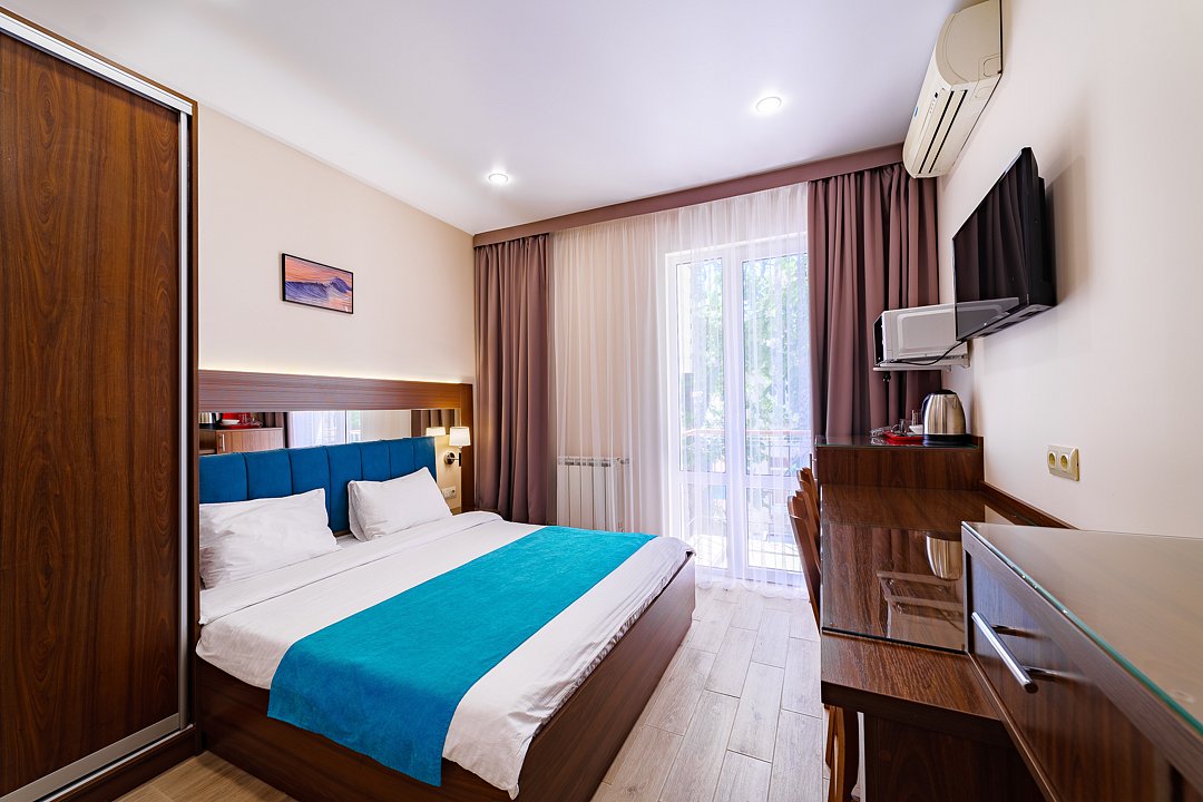 Гостям будут предложены различные категории номеров — от одноместных до четырёхместных с кухней. Номера оформлены в современном стиле, продуманном до мелочей и соответствующем международным стандартам. В каждой комнате есть современная мебель, ортопедические матрасы, кондиционер, холодильник, телевизор, душевая кабина, фен, гигиенические наборы и тапочки.