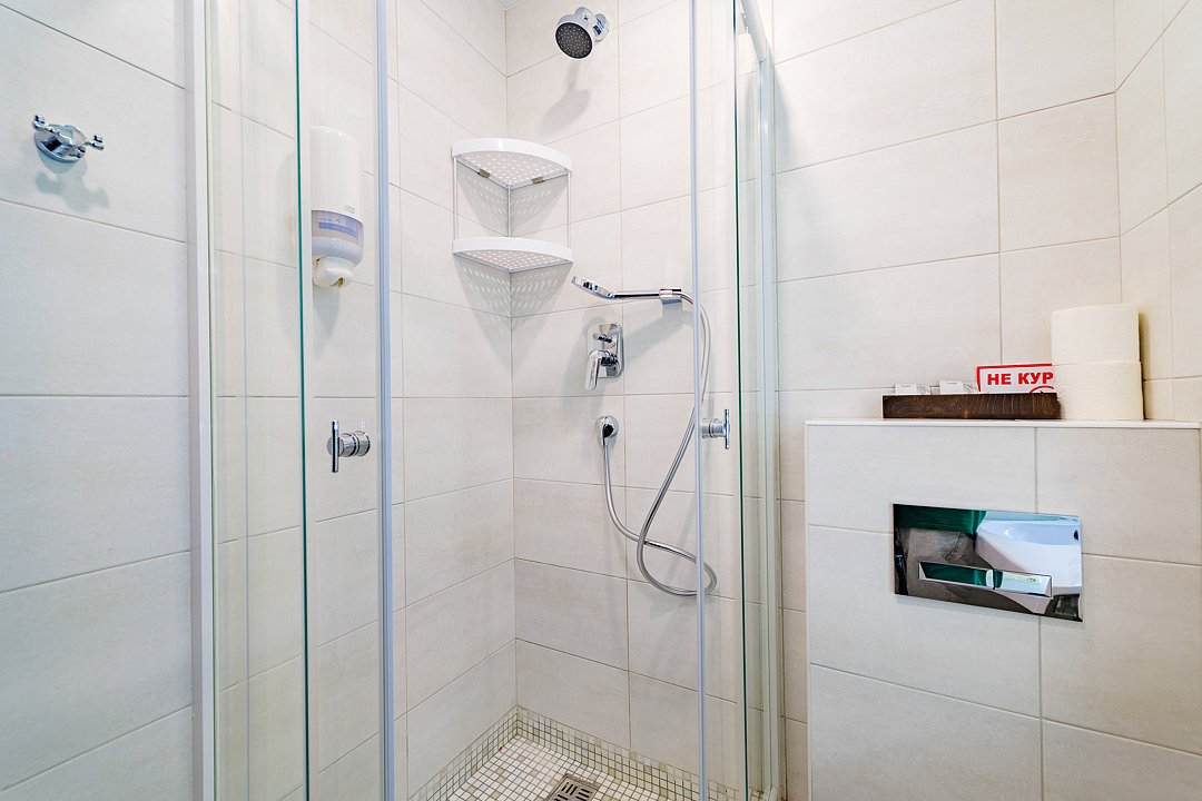 С/у с душевой кабинкой, гигиенические наборы, мыло, гель, шампунь.