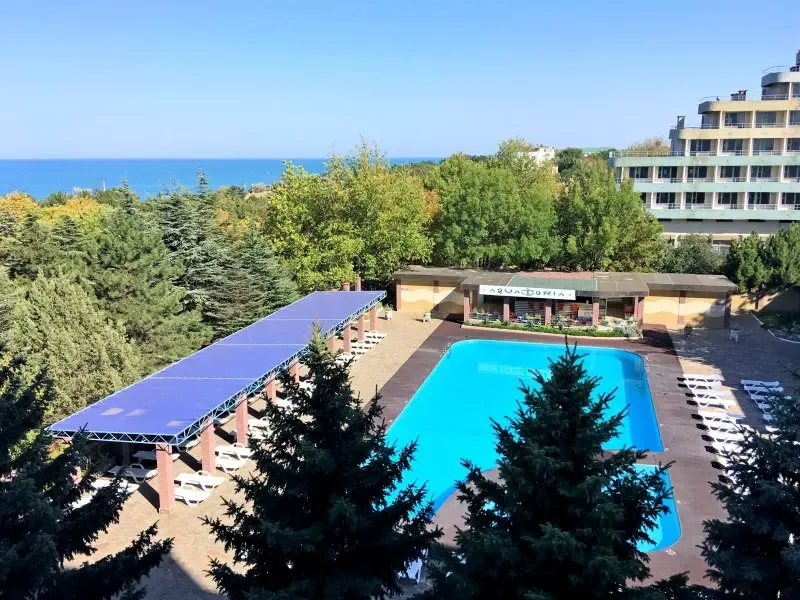 С балкона номера открывается великолепный вид на парк, море и бассейн. В номере комфортно может разместиться до 6 человек. В номере индивидуальный санузел с ванной, круглосуточная подача горячей и холодной воды (установлен бойлер), кондиционер, холодильник, телевизор, сейф, фен. Здесь предусмотрено абсолютно все для того, чтобы отдыхающие чувствовали себя в пансионате как дома.Услуги и удобства