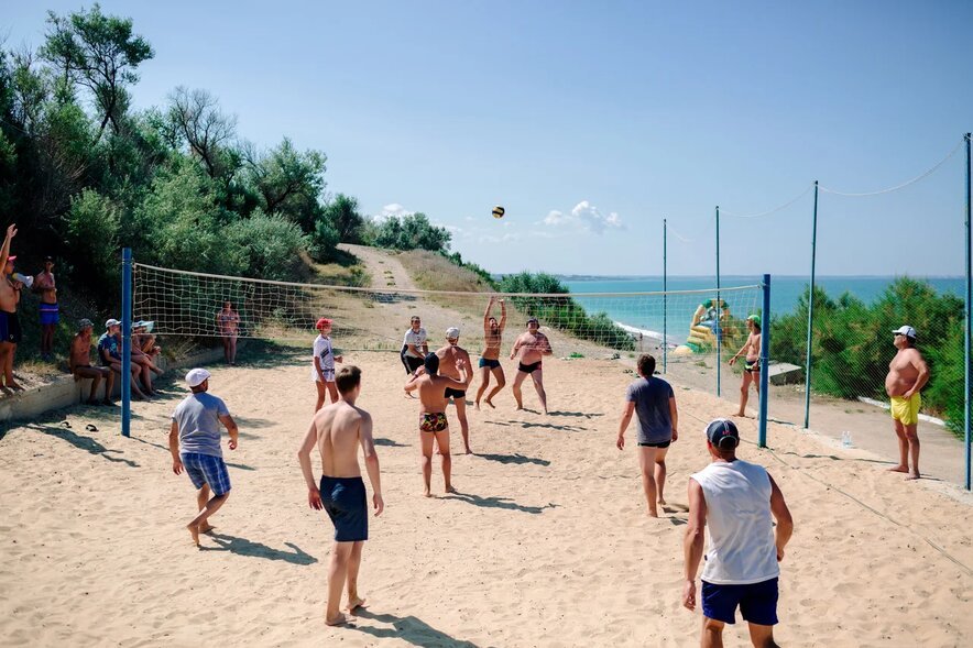 В утреннее время на пляже работают аниматоры - проводят игры с детьми, а взрослых приглашают на дружественные волейбольные матчи!