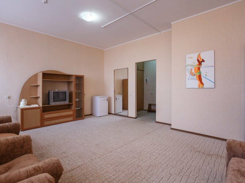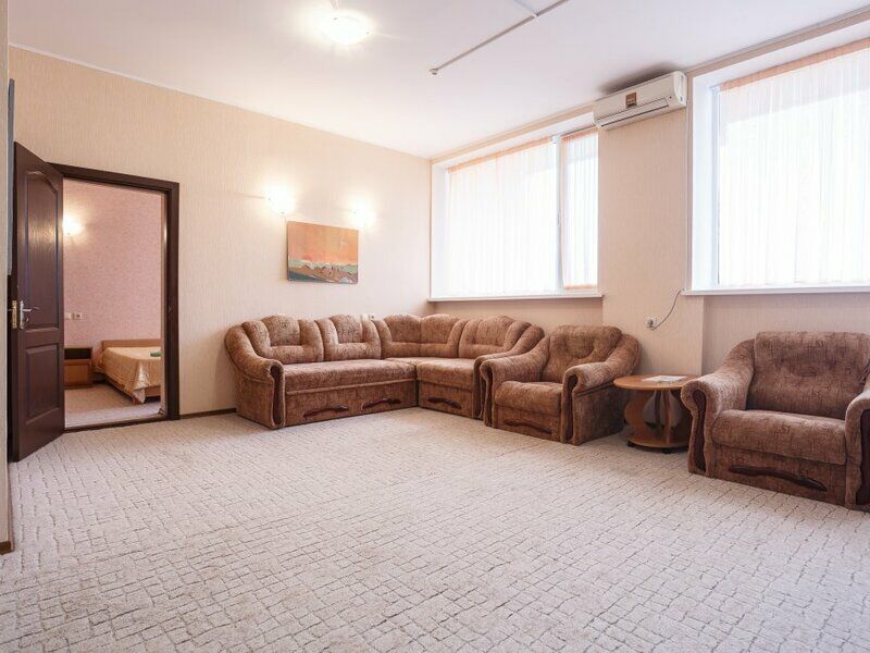 «Люкс» - это 2-х комнатный номер, который состоит из спальни и гостиной. А с балкона номера открывается великолепный вид на парк, море и бассейн. В номере могут разместиться до 5 человек В номере индивидуальный санузел с ванной, круглосуточная подача горячей и холодной воды (установлен бойлер), кондиционер, холодильник, телевизор, сейф, фен.Услуги и удобства