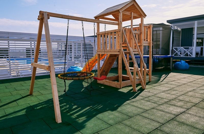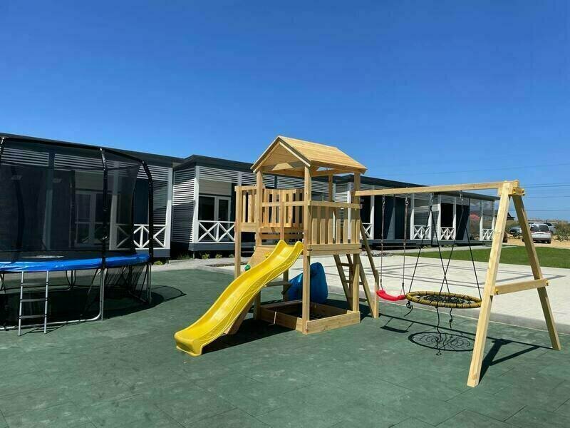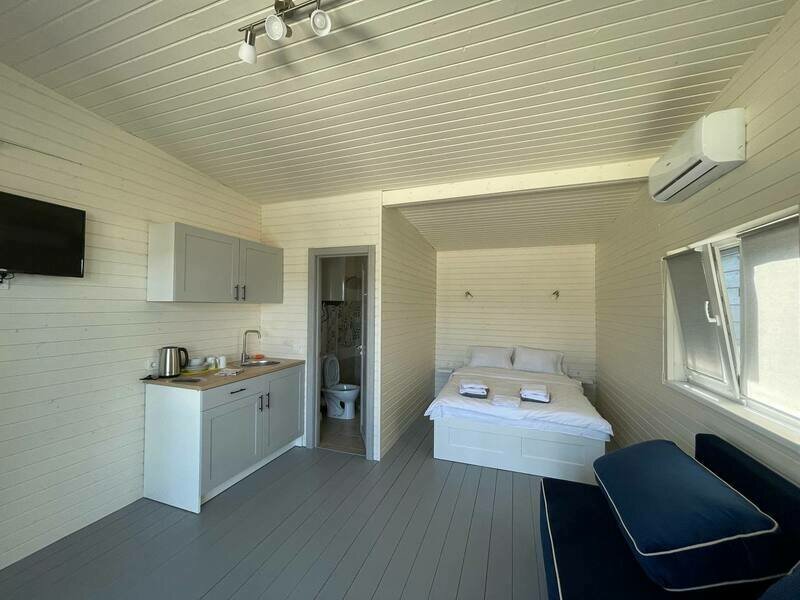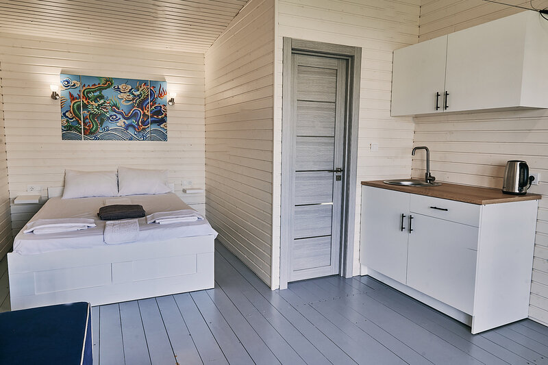 Территорию комплекса занимают одноэтажные домики, выстроенные из экологичного дерева. Гостей ожидают номера-студии, оснащенные мини-кухней и индивидуальным санузлом с душем. В каждой комнате установлен кондиционер, спасающий от жары, есть плазменный телевизор двуспальная кровать и диван.