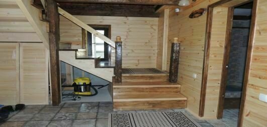 Семейный отдыхДостоинстваПрекрасный атмосферный интерьер: с камином, панорамными окнами. Кухня снабжена техникой и посудой для готовки. На улице есть зона для шашлыков, стол и детская площадка. Вся территория для отдыхающих: стоит отдельно только коттедж хозяев. Спокойная атмосфера.