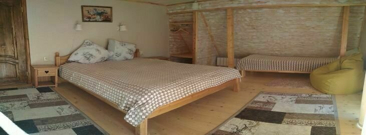 2-й этаж. Три спальни с двуспальными кроватями (есть места для детей ). Туалетная комната с душевой кабинкой. Большая лоджия 15 кв.м с очень красивым видом на горы и усадьбу (выход из 2-х спален).