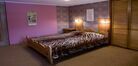 Комплекс расчитан на комфортное размещение 2-х семей с детьми. По необходимости есть дополнительные места в зале. Состоит из 2-х больших спален. В каждой двухспальная кровать + диван, санузел, ТВ. В центральной части расположена третья комната - гостинная с оборудованной кухней,