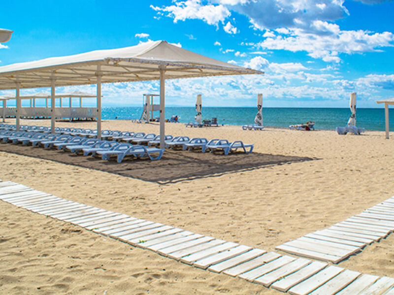 Инфраструктура: лежаки, зонтики, шезлонгиПесчаный пляж