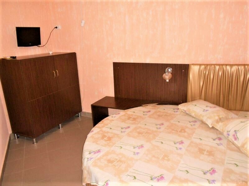 Трехэтажное здание гостевого дома «Золотая рыбка» рассчитано на 50 гостей. Находится на закрытой охраняемой территории. Все номера гостевого дома со статусом «эконом-класса» укомплектованы необходимой мебелью, оборудованы кондиционерами и холодильниками, ТВ и wi-fi, имеется отдельный санузел с душем.