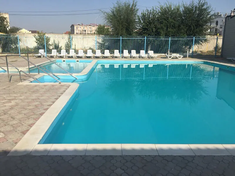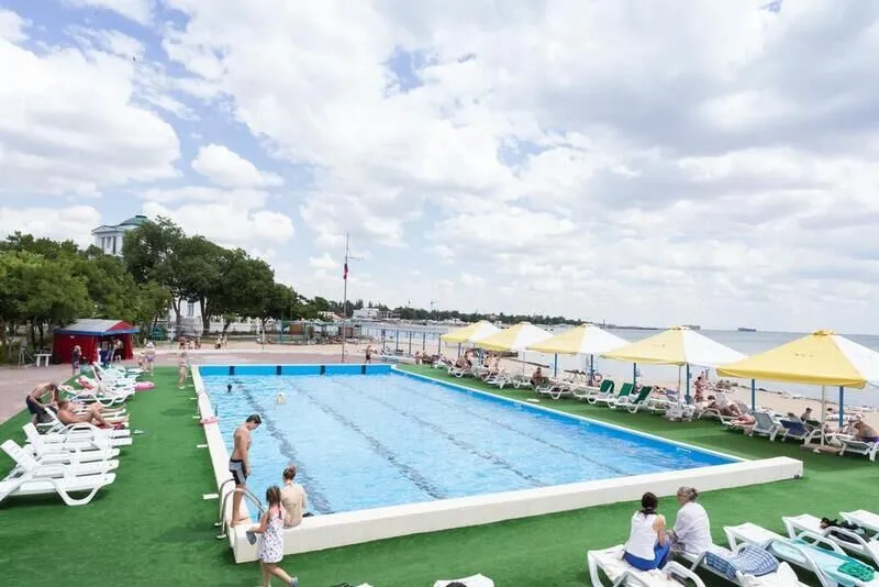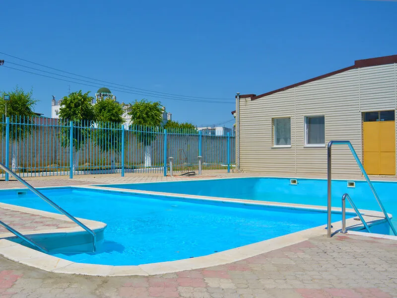 Тип бассейна: открытый бассейнРядом с бассейном: шезлонги, зонтикиГлубина: 150 смПлавательный бассейн с детским отделением для купания. Работает сезонно: июнь-август.
