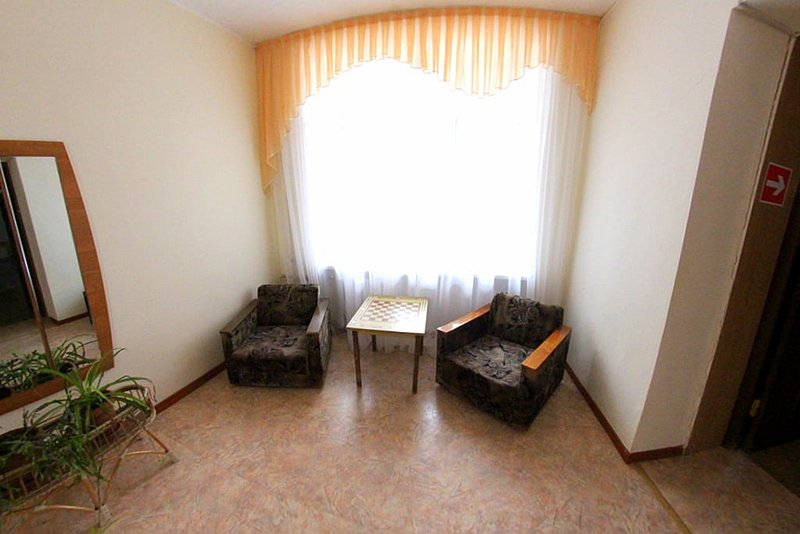 В номерах категории Комфорт сделан капитальный ремонт во всем номере. На полах постелен ковролин, сделан натяжной потолок. Номера очень удобные и светлые. На этаже есть кулер с водой.