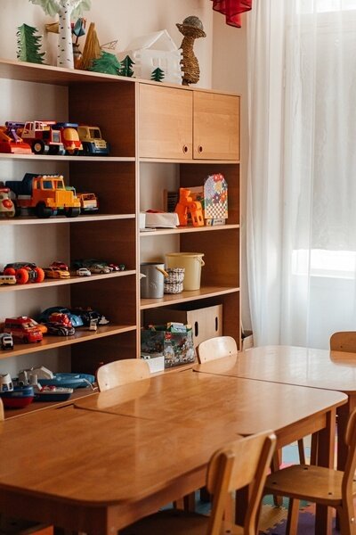 Игровая комната оборудована всем необходимым для детского досуга: здесь есть и интересные игрушки, и место для рисования, и даже книги со сказками. Воспитатель поможет организовать сюжетные и ролевые игры, конкурсы и соревнования.