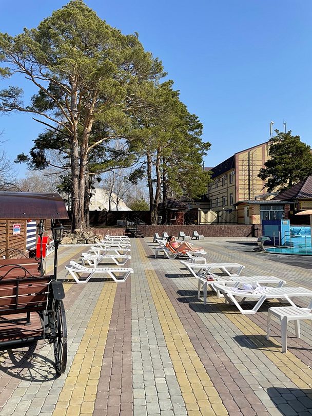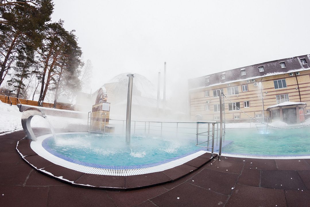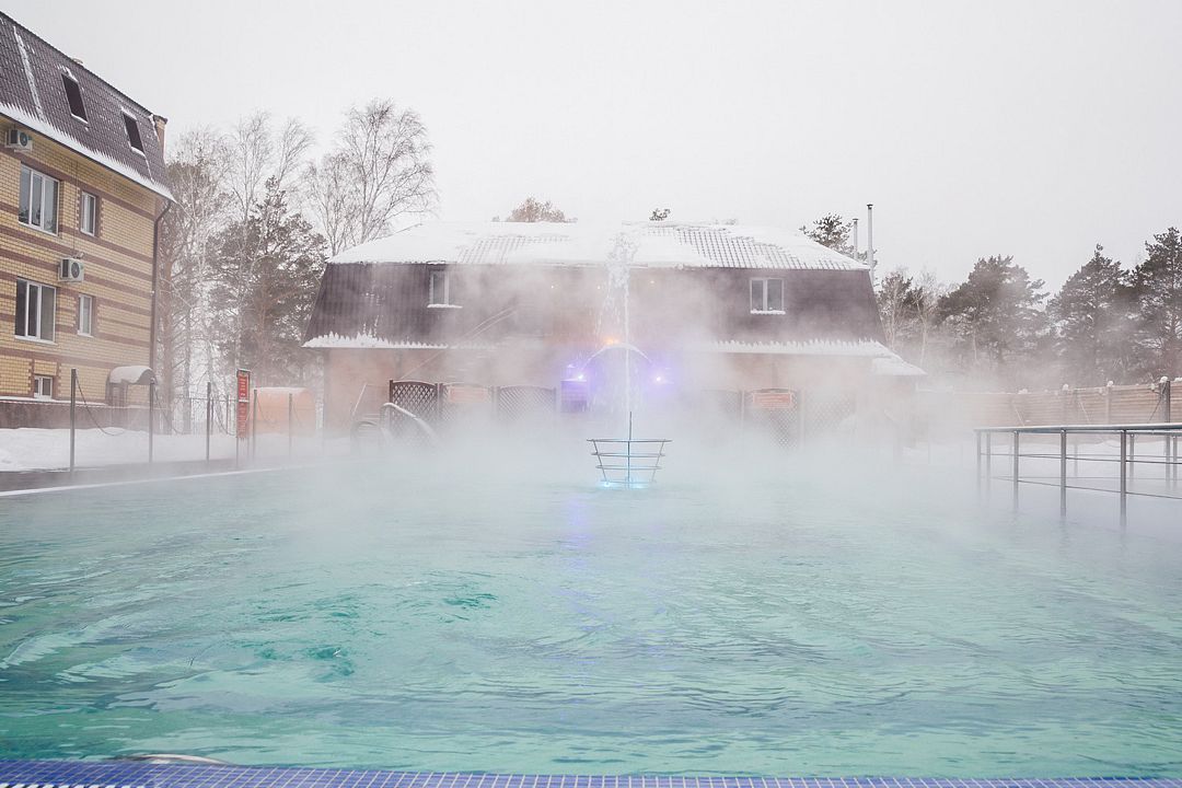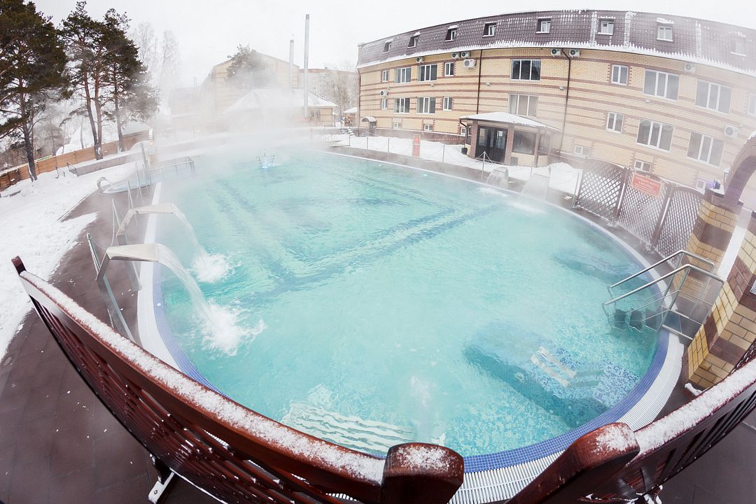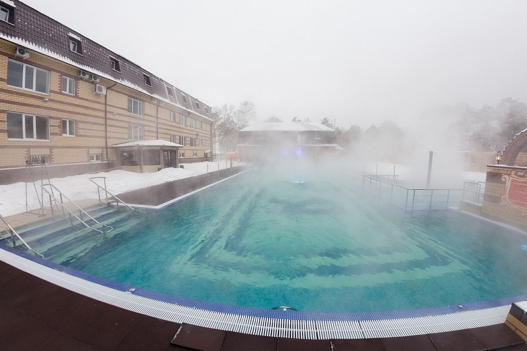 В гостинице работает кафе, есть пространство для проведения для праздника, корпоратива или закрытой вечеринки, для любителей шашлыка организована барбекю-зона с беседками. Главная достопримечательность отеля — термальный открытый бассейн с гидромассажем, работающий круглый год. Гости не только могут поплавать в горячем бассейне, но и выбрать другие термальные процедуры — в их распоряжении бани и хаммам. Для детей организованы площадка с горками, игровая комната «Happy Land» и работает крытый детский бассейн.