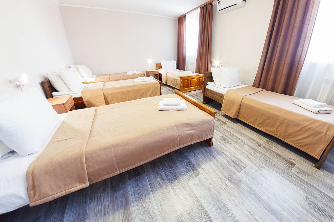 Гостиничный комплекс включает в себя два четырехэтажных корпуса, в общей сложности рассчитанных на размещение 128 человек. Гостей ожидают комфортабельные номера, в каждом предусмотрена ванная комната и установлен кондиционер.