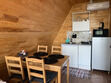 Для размещения доступны уютные дома в стиле a-frame, каждый из которых разделен на два уровня. На втором уровне вас ждет удобная двуспальная кровать, а на первом —- просторная гостиная с раскладным диваном, подвесным креслом-гамаком, обеденной зоной и мини-кухней, оснащенной всем необходимым: плитой, чайником, микроволновой печью и холодильником. Домики оборудованы кондиционером, собственным санузлом и душем, а также феном. Постельное белье и полотенца предоставляются.