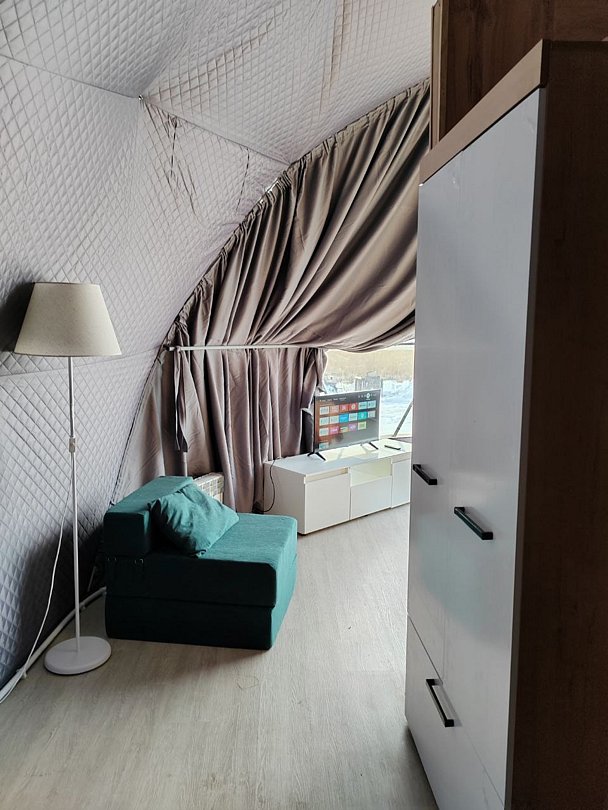 Расслабьтесь и погрузитесь в атмосферу единения с природой. Домик с панорамным видом. Наслаждайтесь потрясающими закатами, сидя на собственной террасе с подсветкой. Вас ждут комфортные условия: удобная двуспальная кровать, панорамное окно, полностью оборудованная мини-кухня (холодильник, микроволновая печь, чайник, индукционная плита, посуда, штопор), TV, Wi-Fi, кондиционер, санузел с душевой кабиной, фен, мини-бар.