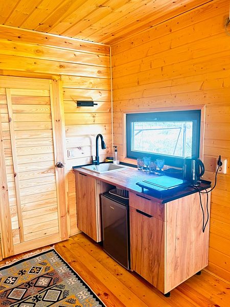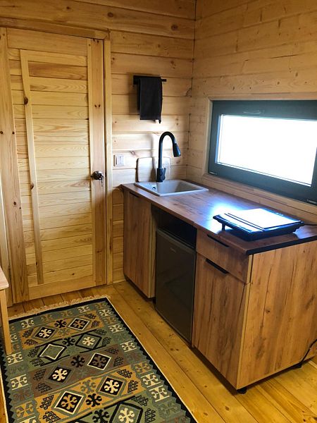 К Вашим услугам комфортабельный жилой модуль, оборудованный обзорными окнами с живописным видом на озеро.