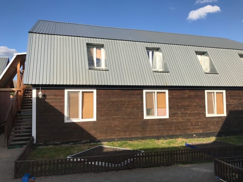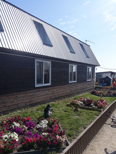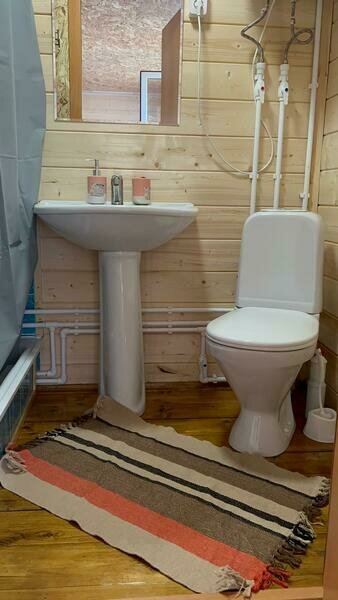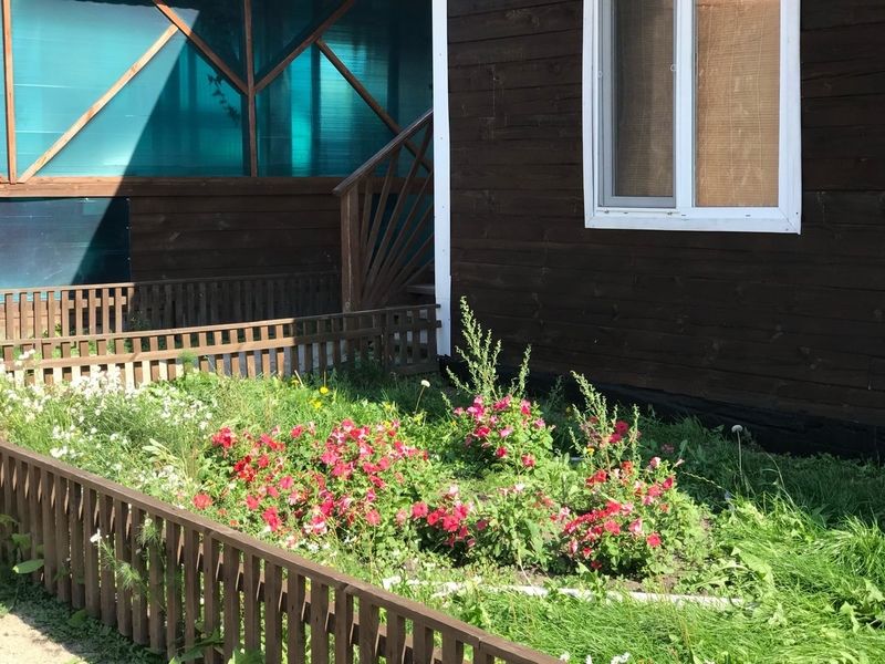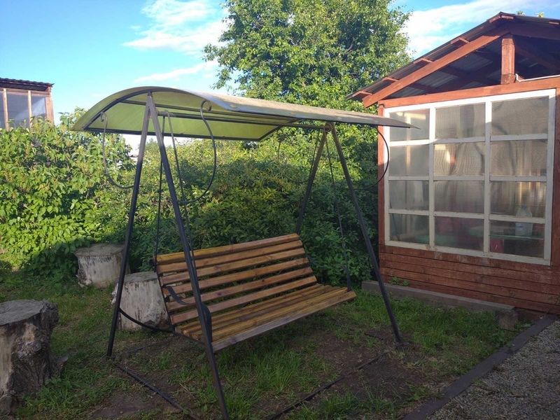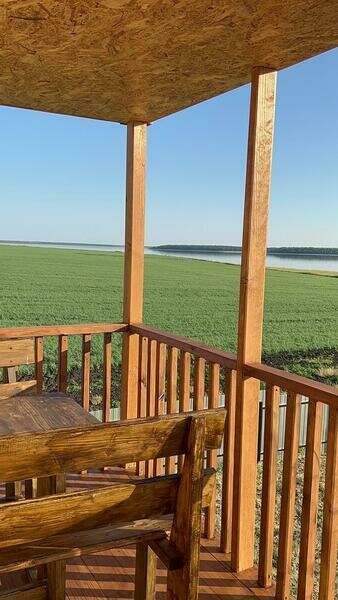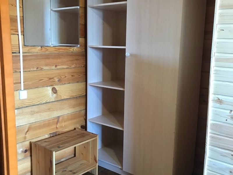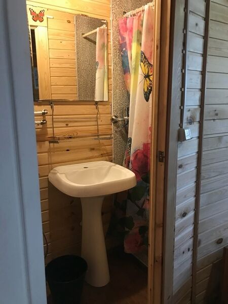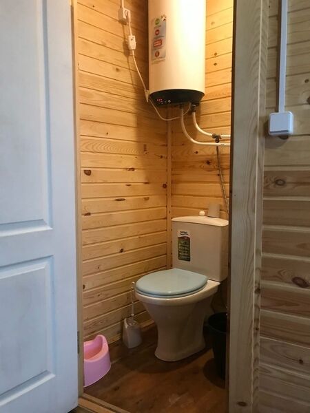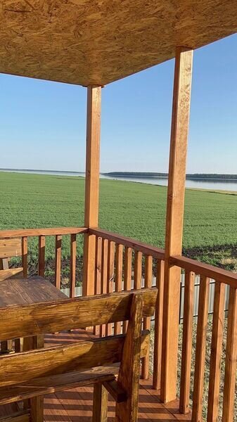 Комфортный двухэтажный деревянный коттедж, сдается каждый этаж отдельно, для каждого этажа отдельный вход. Вместимостью до 5 человек, включая детей. На каждом этаже есть все необходимое для комфортного проживания: двухспальная кровать, односпальная кровать, небольшой диван, кухня, душевая кабина и санузел с раковиной. Так же имеется терраса с садовой мебелью с видом на озеро.