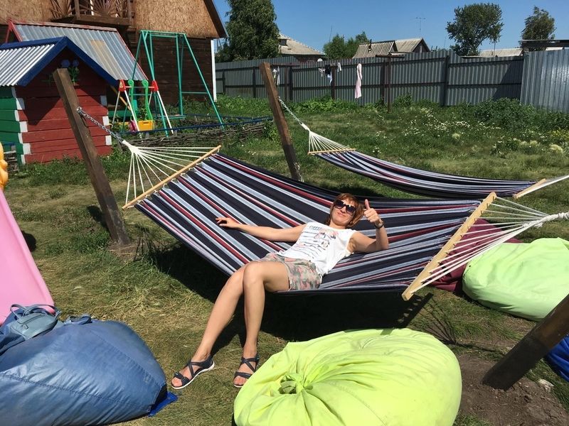 Гости могут отдохнуть на свежем воздухе, воспользовавшись специальной зоной с гамаками и мягкими креслами-грушами.